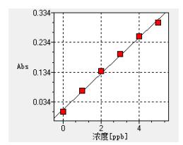 3.4.2 镉标准曲线工作液:准确吸取镉标准使用液0mL、0.5mL、1mL、1.5mL、2mL、3mL于100mL容量瓶中,用硝酸溶液(1%)定容至刻度,即得到含镉量分别为0ng/mL、1ng/mL、1.5ng/mL、2ng/mL、3ng/mL的标准系列溶液。