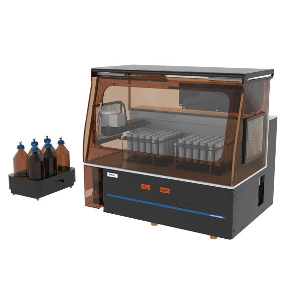 铜矿中金属元素检测是铜矿资源开发、冶炼生产、环境保护和国际贸易中不可或缺的重要环节,对于实现资源的高效利用、提高经济效益和保护环境具有重要意义。通过检测铜矿中铜的含量以及其他有价金属(如金、银、钼等)的含量和分布,可以准确评估矿石的经济价值和帮助矿山企业制定合理的开采计划,也有助于地质学家了解矿体的分布规律和品位变化,从而指导进一步的勘探工作。银是一种贵金属,具有较高的经济价值,在铜矿中,银的含量虽然通常较低,但其价值不可忽视。为检测铜矿中的银元素含量,采用SH60A全自动消解仪对其进行前处理,SH60A全自动消解仪是用于AAS、ICP、ICP-MS等无机元素检测的“一站式”前处理系统。整个系统实现了湿法消解的全程自动化,包括清洗、加液、混匀、加热、赶酸、冷却、定容等步骤,非常适合大批量样品的处理,减少了人为操作引起的误差,提高了实验结果的准确性和可靠性。